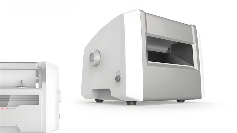 機身采用折角與弧線共生的設計語言,方正的框架結構確保設備穩定性,圓弧倒角則消解了醫療設備的壓迫感。