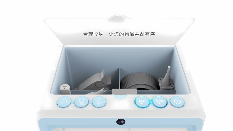 血壓計袖帶在卡槽里服帖地卷成小卷,旁邊固定著備用采血針的獨立暗格——這些日常使用的收納痛點,被設計者悄悄撫平。