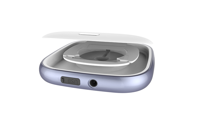 頂部的磁吸式開蓋設(shè)計尤為貼心,輕輕一推就能更換按摩頭或清潔內(nèi)部,避免了傳統(tǒng)卡扣的繁瑣;側(cè)面的充電接口隱藏在銀色飾條中,不破壞整體美感。