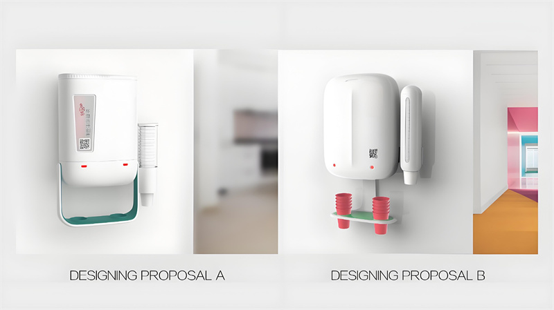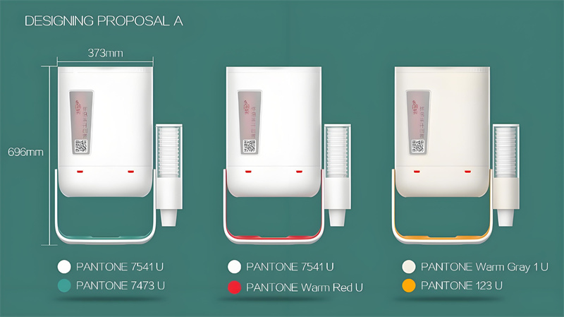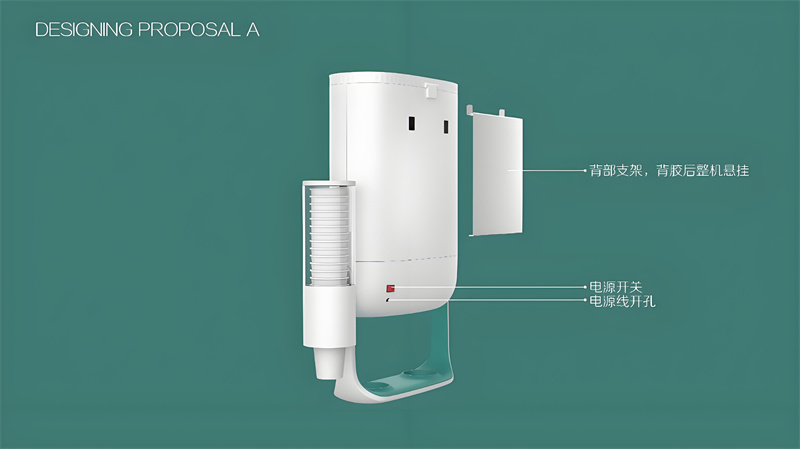 設計首先源于功能。考慮到茶飲機需要掛墻安裝,我們設計了穩固的背膠式固定架,力求安裝簡便又可靠。