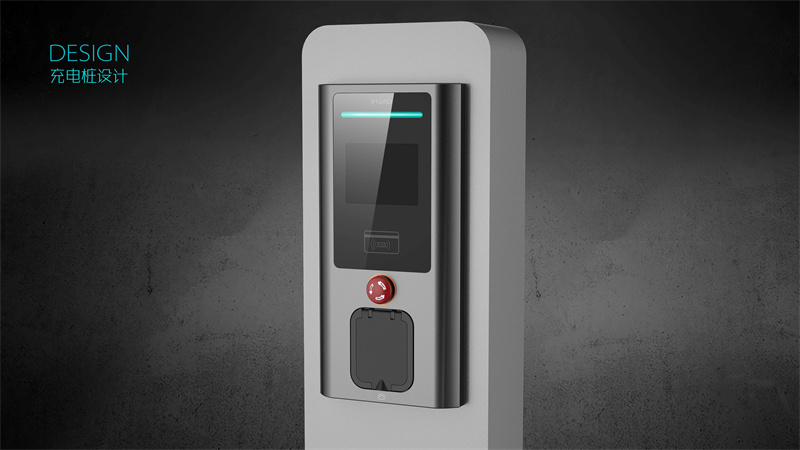 充電樁以規整的矩形為基礎形態,傳遞穩定可靠的視覺印象。