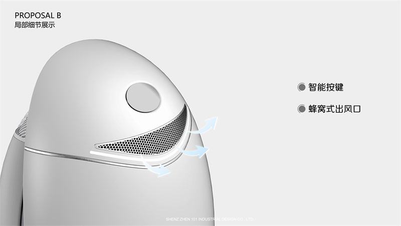 上下分區的結構設計直觀區分進風與出風區域,讓空氣凈化過程可視可感。