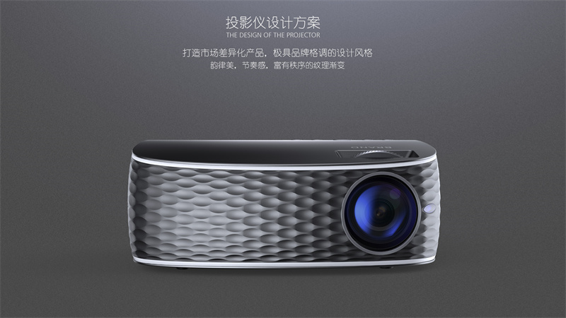 兩側(cè)微微隆起的 “肌肉線條”,不僅賦予產(chǎn)品雕塑般的立體感,更巧妙隱藏了內(nèi)部散熱結(jié)構(gòu) —— 這種設(shè)計既打破了傳統(tǒng)投影儀方正刻板的形態(tài),又讓科技感從冰冷的參數(shù)轉(zhuǎn)化為可感知的視覺張力。