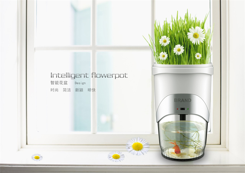 花盆采用創新的魚植共生系統,上層種植區與下層水族區形成完整的生態循環。