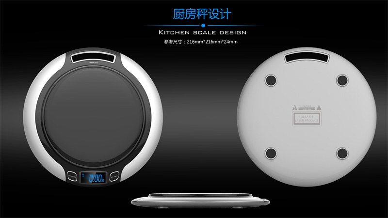 總之,廚房秤的外觀設計還需要與廚房的整體風格相協調。如果廚房的整體風格是現代簡約風,那么廚房秤的外觀設計也應該遵循這一風格,選擇簡潔的線條和明亮的色彩;如果廚房的整體風格是田園風,那么廚房秤的外觀設計可以考慮加入一些自然元素,如花草、樹木等圖案或色彩。還需要注重細節的處理。比如,秤面的邊緣可以設計成圓潤的弧形,以防止磕碰;操作按鈕的布局要合理,方便用戶操作;秤底部的防滑設計也要考慮到,以確保廚房秤在使用過程中的穩定性。