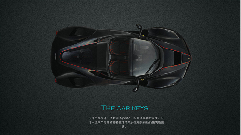 智能車鑰匙的外觀設(shè)計采用了流線型設(shè)計,線條流暢,動感十足。這種設(shè)計不僅使鑰匙在手中更加舒適,也寓意著速度與激情。同時,流線型設(shè)計也減少了空氣阻力,象征著車輛在行駛中的流暢與速度。設(shè)計靈感來源于法拉利Aperta,具有動感和方向性。設(shè)計中抓取了它的前部特征來表現(xiàn)并延續(xù)其前臉的飽滿造型感。