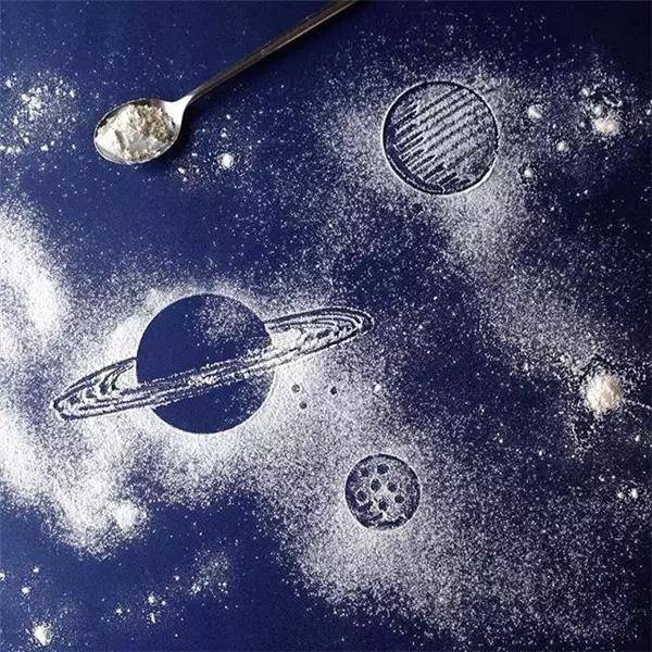 灑在桌子上的面粉,就是一副壯觀的星空圖~