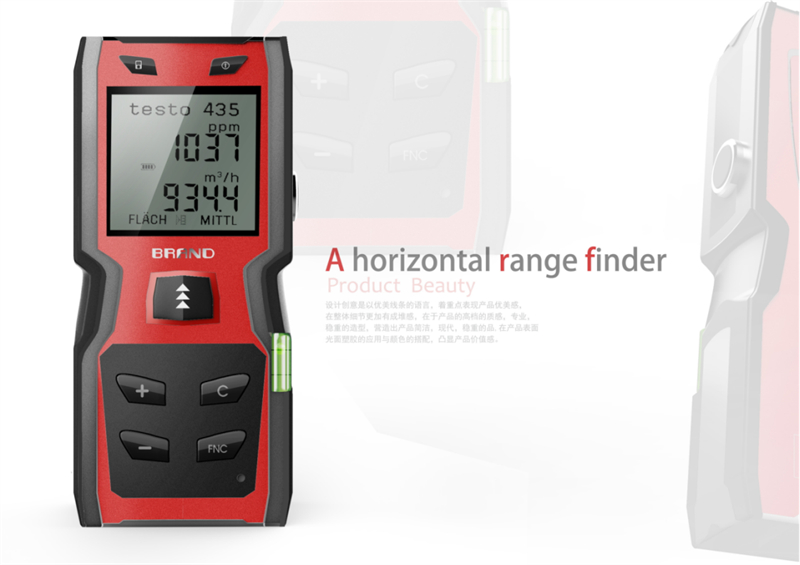 在功能布局上,我們充分考慮了用戶的使用習慣和操作便捷性。將顯示屏置于產品的正面中央位置,方便用戶直接觀察測量結果。操作按鍵則分布在顯示屏兩側,方便用戶單手操作。此外,我們還設置了一個可折疊的支架,以便用戶將測距儀固定在水平面上進行測量。
