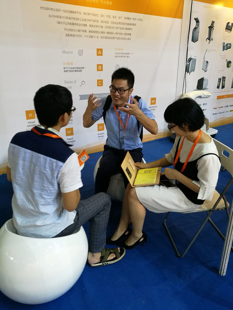 101工業設計的展位位于7號館7A57~7A58,作為本屆博覽會的邀約單位,現場的觀眾以及參展商都比較感興趣,咨詢101工業設計的人絡繹不絕!